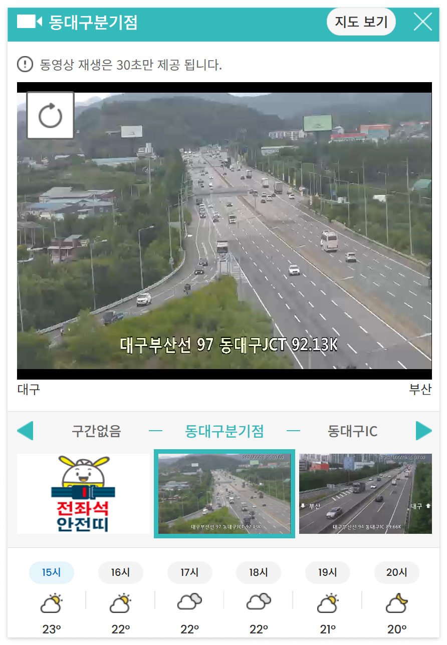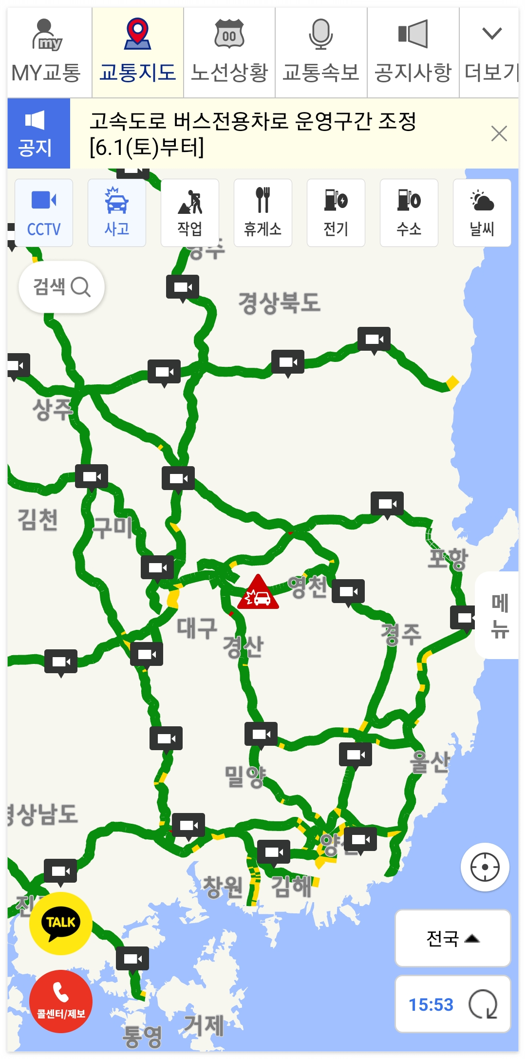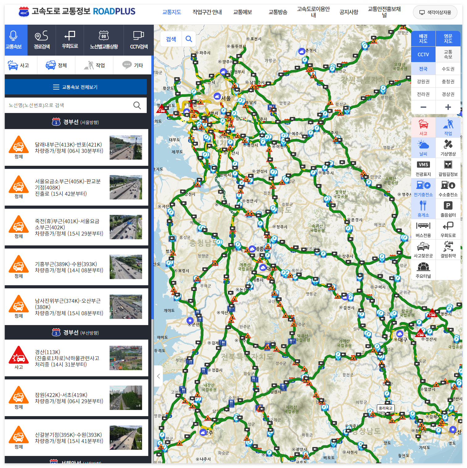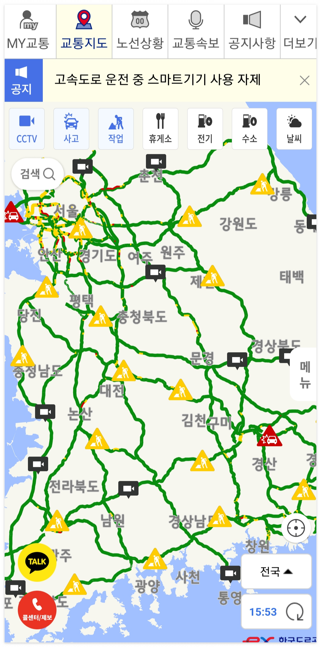 🔹전국 고속도로의 소통상황과 CCTV영상, 사고정보, 휴게소, 충전소, 졸음쉼터 등의 교통정보를 제공합니다.