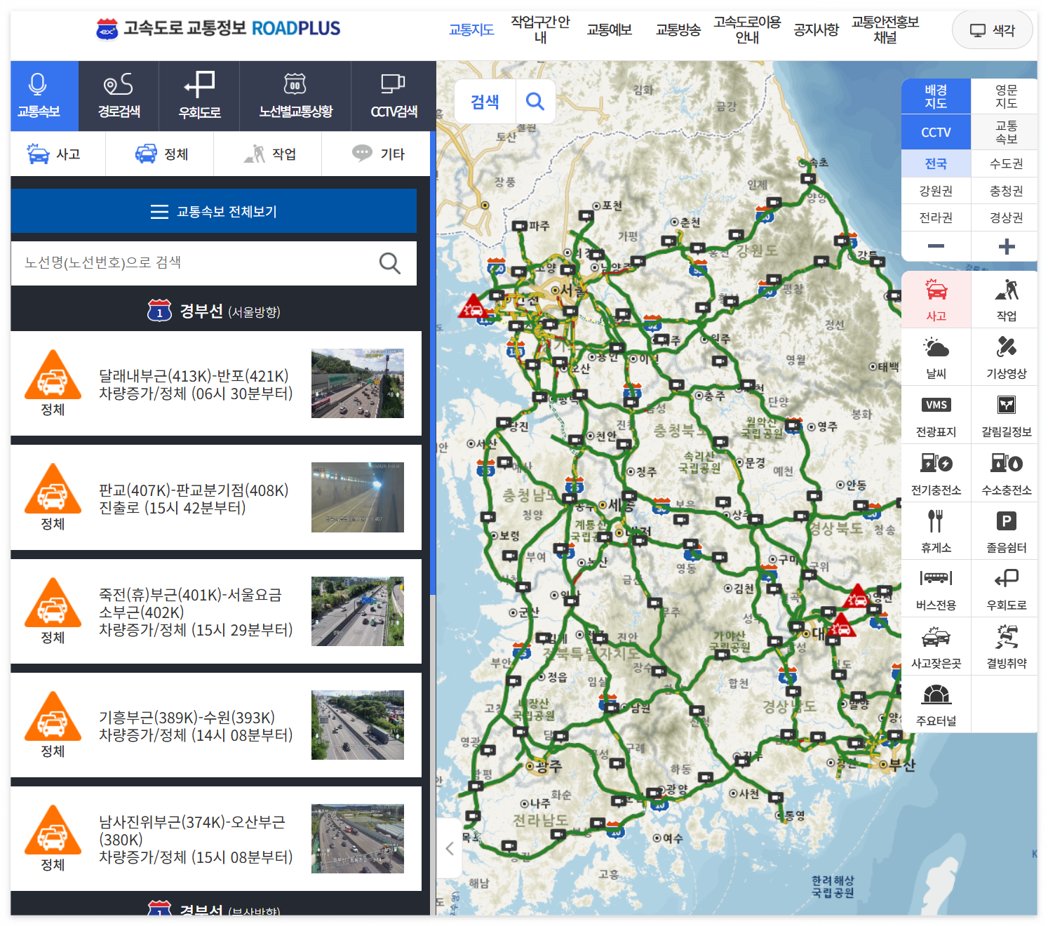 중요한 약속시간을 교통정체 때문에 늦은 적은 없나요? 명절때, 입학식일 때, 큰 행사가 있을 때는 늘 교통 체증 때문에 중요한 약속시간을 어기곤 하였습니다. 이제는 더이상 늦을 필요 없습니다. 실시간 도로 상황을 CCTV로 확인이 가능하고, 약속 시간이 늦을 때는 우회도로까지 알려주니 혜택을 놓치면 손해를 보면 안되겠죠? 시간과 비용을 아껴줄 앱을 소개해 드리겠습니다. 고속도로 교통상황 및 실시간 CCTV 확인하는 방법에 대해서 알려드리겠습니다.
