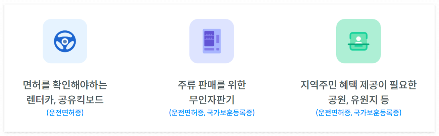 디지털 운전면허증은 주민등록증 대용으로 사용되며, 주류 구매 시나 지역주민 혜택을 받을 때, 은행이나 관공서, 공공기관에서도 사용할 수 있습니다. 특히, 불편하게 지갑에 넣고 다니지 않아도 언제든지 휴대폰만 있으면 법적 효력을 갖기 때문에 편리하게 사용할 수 있습니다.