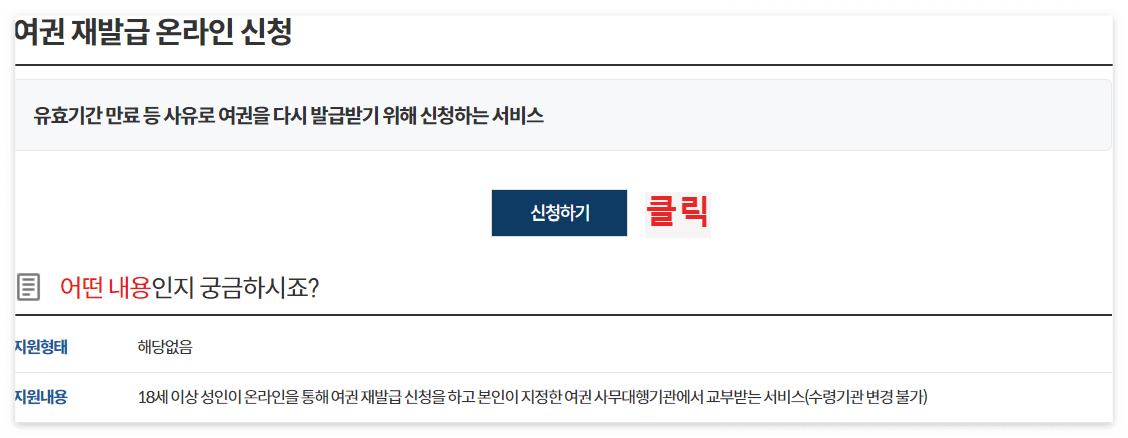 🔹만 18세미만 신청인의 경우는 온라인 재발급 신청이 불가합니다.