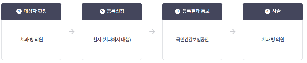 ✅건강보험대상자:치과 또는 병원 의원, 건강보험공단 지사에 대상자를 등록하거나 신청