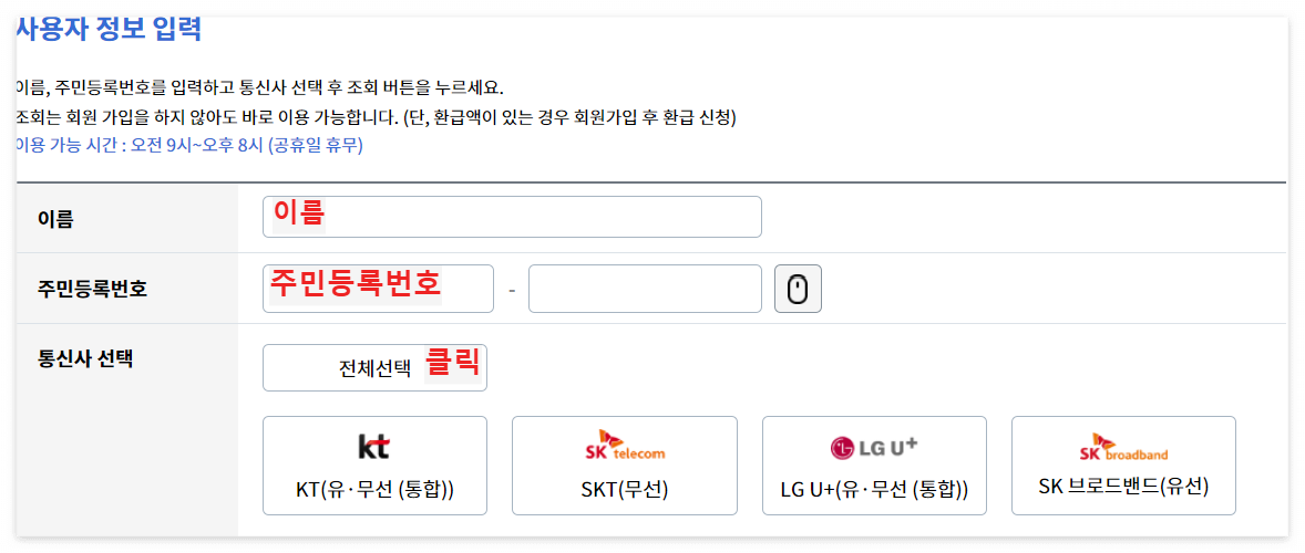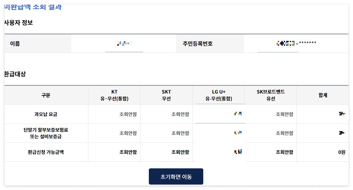 5.환급금액이 다른 경우 해당 통신사 고객센터로 문의 바랍니다.